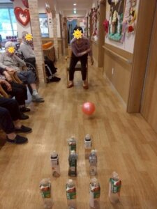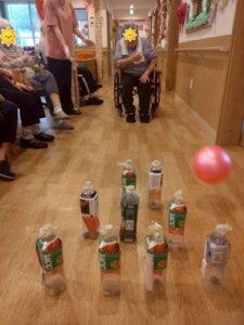 ペットボトルボーリングを行い、皆様1番を目指し勢いよく転がしました✨