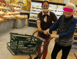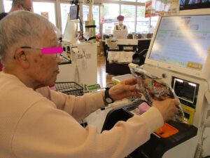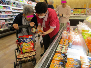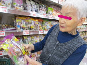 お買い物レク⇒バロー浄水店にお買い物に行って来ました。皆さま、好みのおやつをカゴに入れ、初体験!セルフレジで会計を済ませて帰りました!