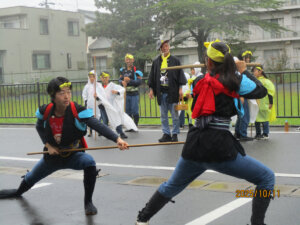 四郷 棒の手警固祭り⇒雨の中の演武となりましたが、入居者様も小さいお子さんの頑張る姿に声援を送られました。