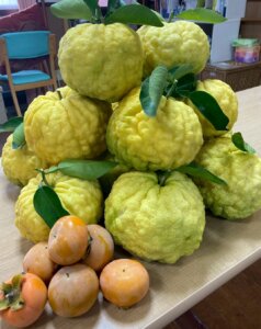 サライの庭では、今年はたくさんの鬼柚子が収穫。柚子風呂にして香を楽しんでいただきました。