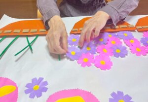 工作レクレーションは秋にちなんだ、コスモスやハロウィン飾りづくり。。。