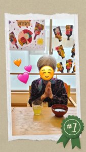 鏡開きにて、 皆様でぜんざい!ですが、 お餅は危険⚠️な為…食べやすく可愛い「たま麩」で代用しました!